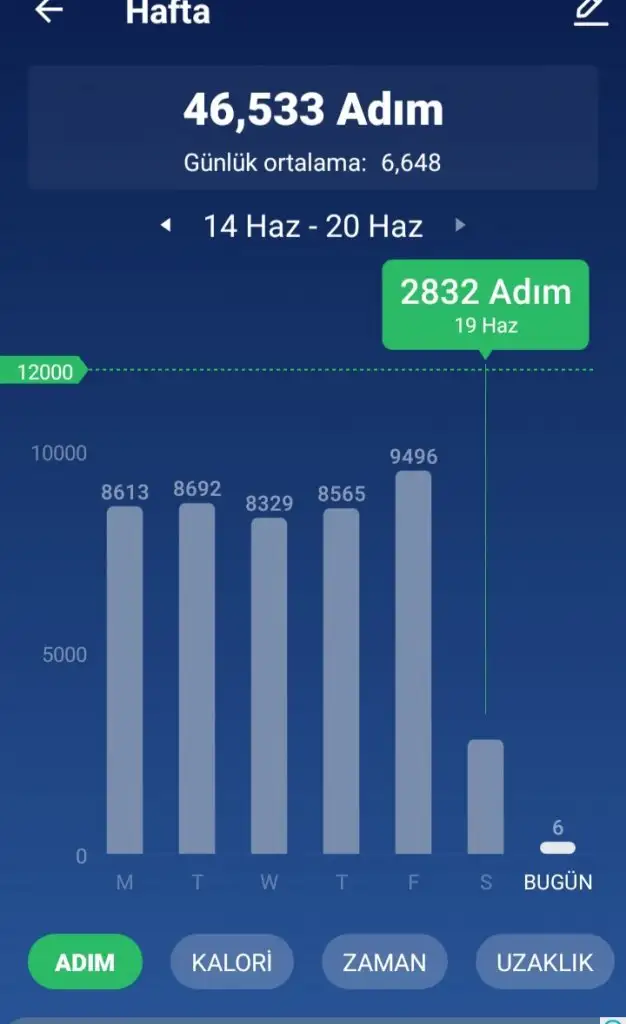Dunki yorgunlugun etkisiyle bugun fazla hareket edemedim yarin adimi arttiracam