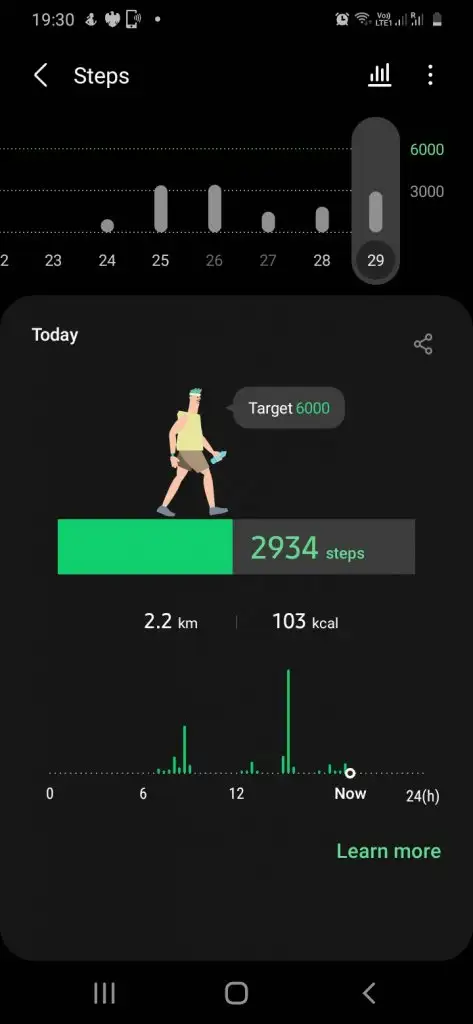 Saatimin sarji kayip. Telefonun kaydettigi 2934 adim.