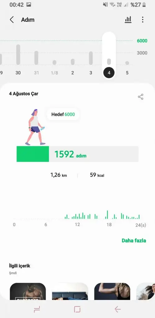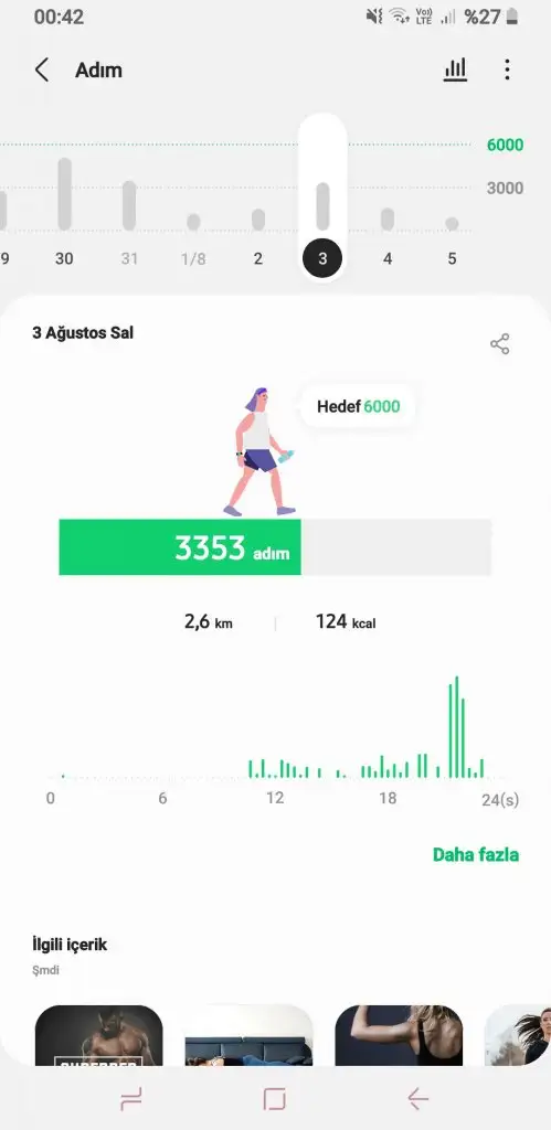 Su : 3lt spor: bilekliği mi duşta unutmuşum sabah ki 3400 adimim var sadece kayıtlı