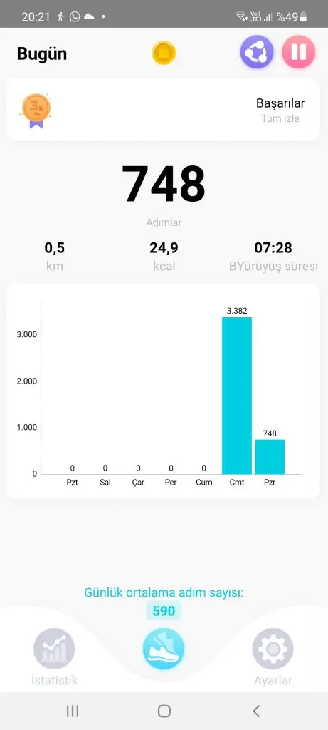 Bugun hep ayaktaydim ama tlf elime aldigim kadar 748 adım olmuş daha spor yapmayi dusunuyomda bakalim bugun cok dengesiz oldu![]()