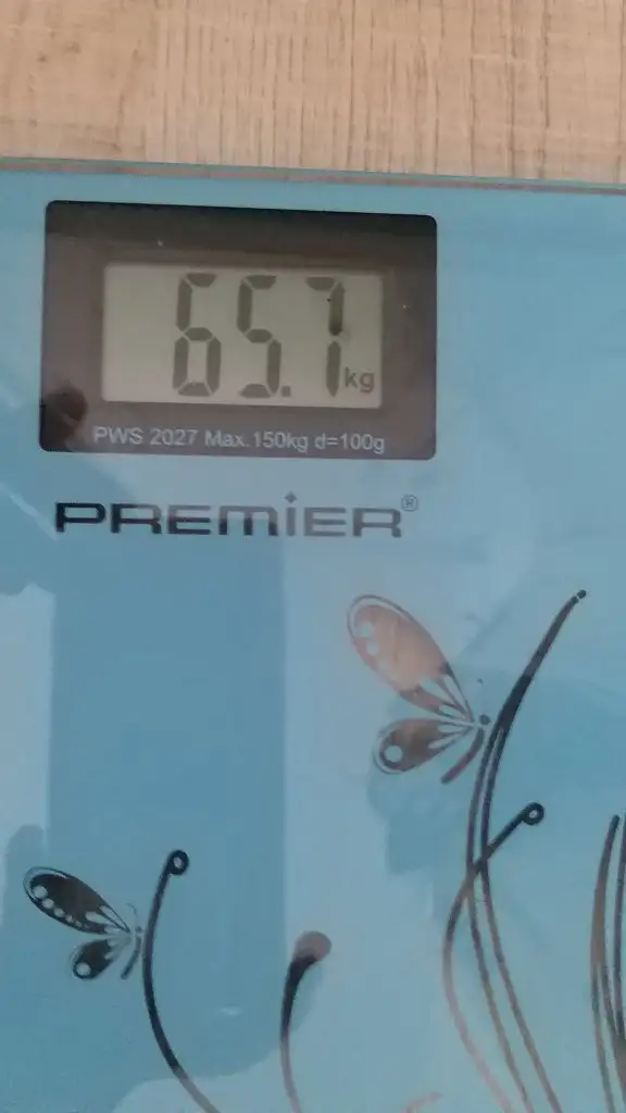 Bugün 59,5 kg. Maalesef +100 gram. Çünkü pazar dışarıda yedim. 😭 Akşam hafif geçirip dengeledim ama yetmedi.