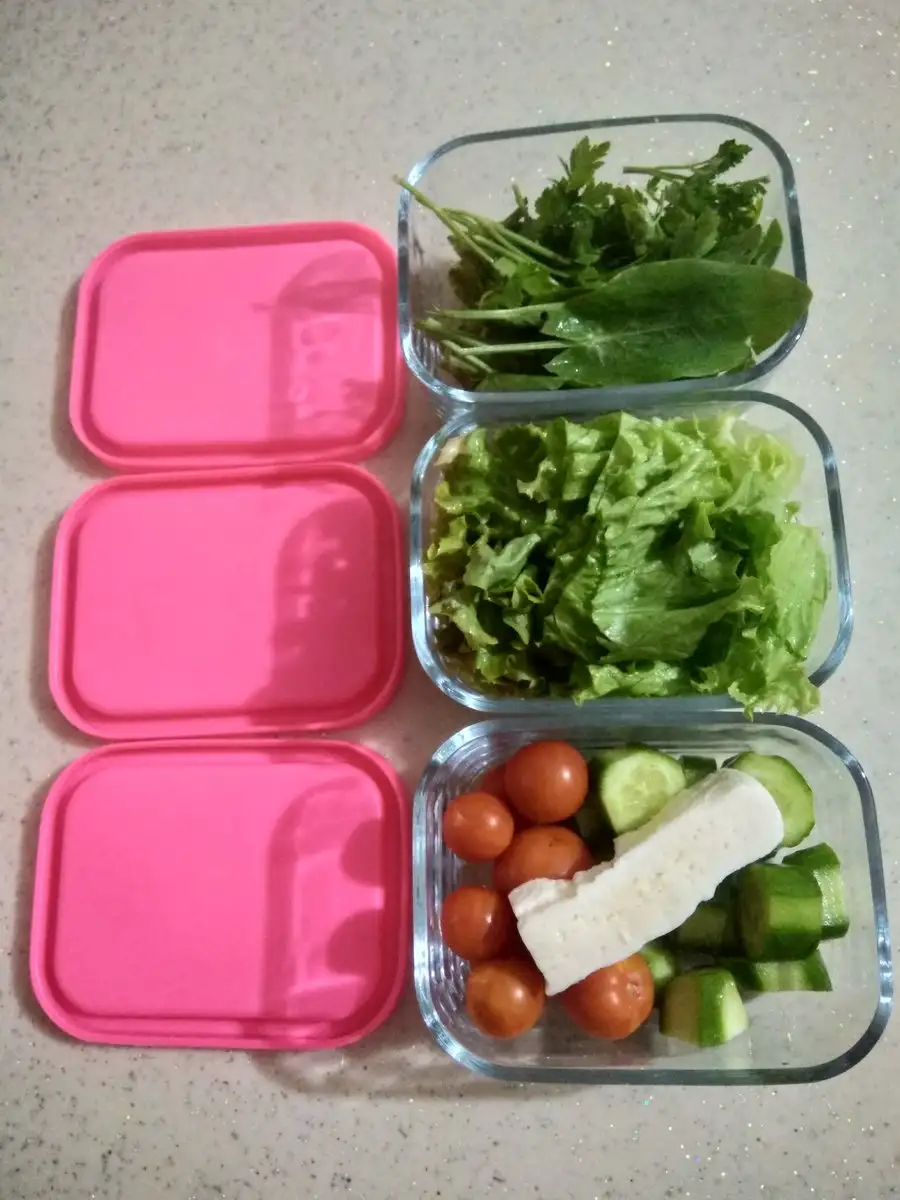 Kahvaltımı şimdiden hazırladımKöy peyniri, domates-salatalık ve bolca yeşillik