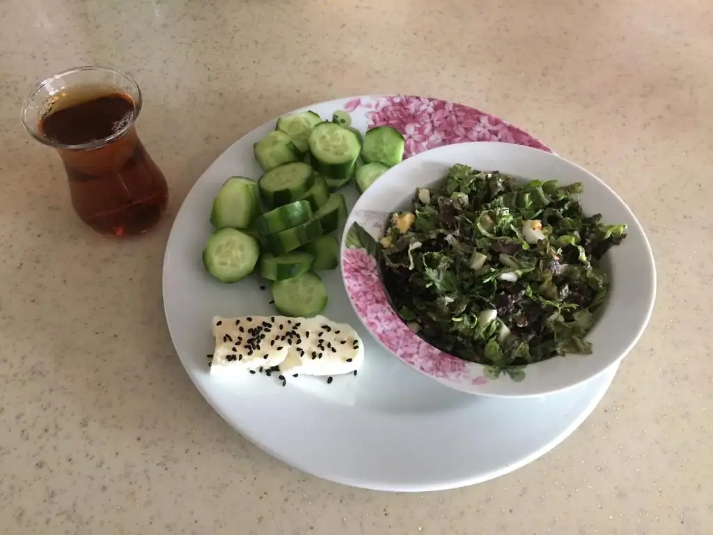 Sabah: 1 kase yumurta salatası,peynir,salatalık