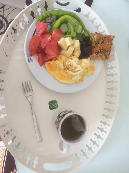 Bugün haşlanmış yumurta domates salatalık zeytin krem peynir iki adet tambuğday ekmeği