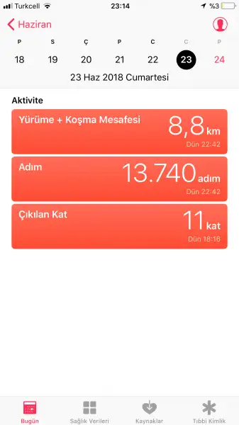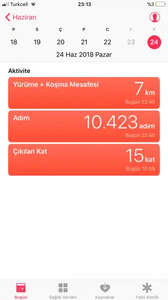 Sabah kalktigimda 1saat 15 dk yurudum hareket yaptim.