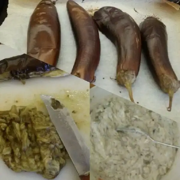 Öncelikle patlıcanları közlüyoruz. Kabuğunu soyup ince ince doğuruz.. üstüne 1 kase yoğurt ve 1 diş sarımsak ekliyoruz. . Azcıkta tuz..