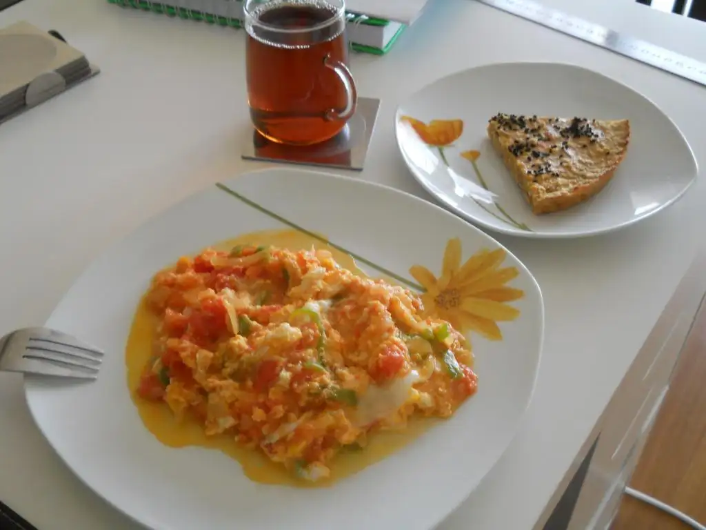 çeyrek soğann 2ad domates yarim köy biberi 2 ad. yumurtadan menemen ve dukan ekmeğimi bandira bandira yiyorum..