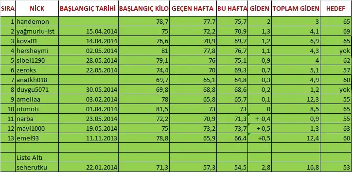 Brnle baslayanlar 2 haneli rakamlari vermisler ben.4 kg puuuuffffff