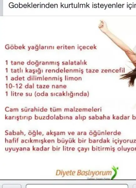 Tamam ozaman zaten çok fazlan yok göbek için de mekik çekersin bol bol bide bi tarif buldum işe yararmı bilmem bende denemeye çalışıcam onu yap ohhh gitsin göbiş kilolar moralini bozma gülümse sağlıklısın gençsin güzelsin ok $ImageUploadedByKadınlar Kulübü1403613987.288847.webp