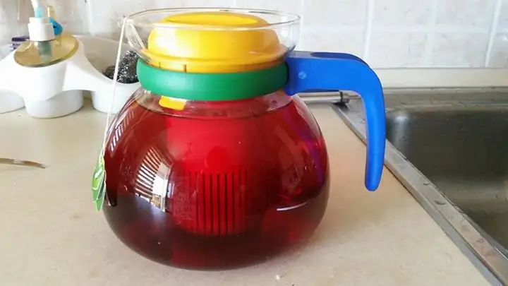 cezvede biraz kaynayan çayımızı dinlenmeye tezgaha alıyoruz...ılıyınca süzerek sürahıye ilave ediyoruz ve dolaba kaldırıyoruz.1 lt hibiskus suyunu ister sıcak ister soğuk içebilirsiniz ben soğuk içiyorum...sabahtan geceye kadar bitiriyorum,aman dikkat çok içmeyin tansiyon düşürüyor kendi bünyenize göre dikkatli tüketin.....