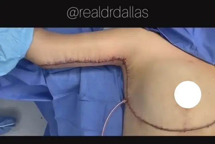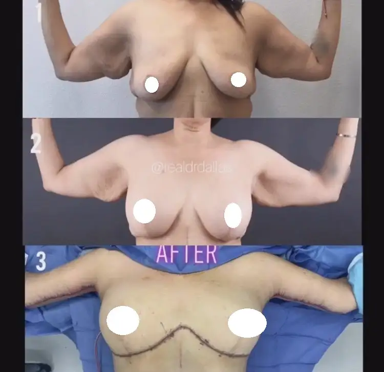 (Sanırım bu ameliyattan önce bir meme dikleştirme ameliyatı yapılmış yukarıda iz gözüküyor)
