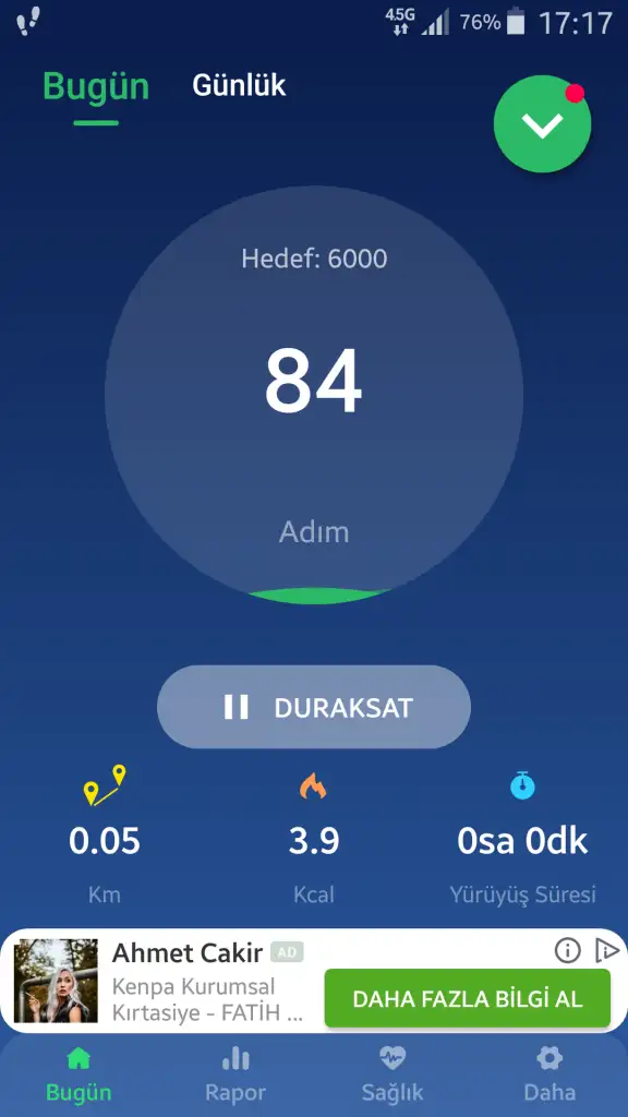 Adımsayar yüklettin banaYawrum bence senin adımsayar bile temizlikten anlıyor, benimki de benim gibi pek anlamıyorsa artık