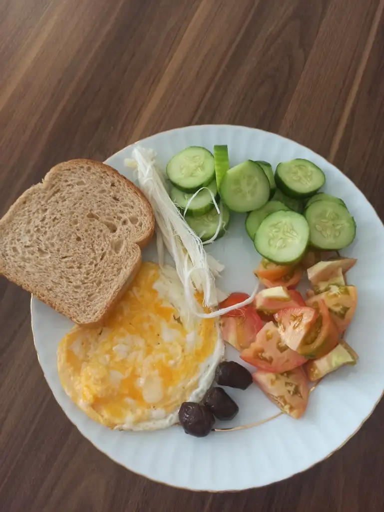11.30 omlet, domates, biber, peynir ve bir şeftali