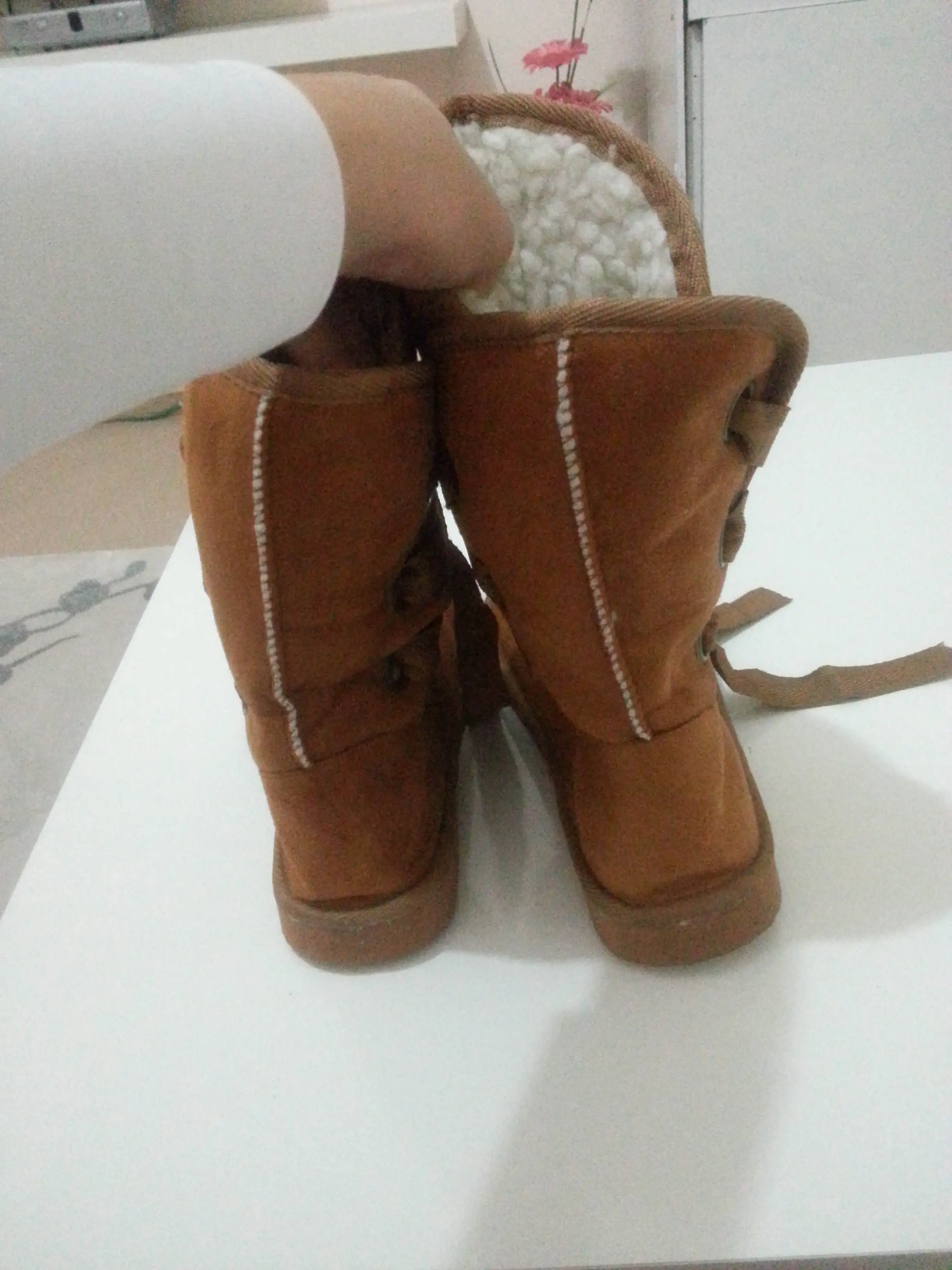 Bağcıklı ugg bot. 37,5-38 numara taba renk. Eşim hediye almış ama bana büyük geldi, değiştirme şansımız da yok. 35 tl