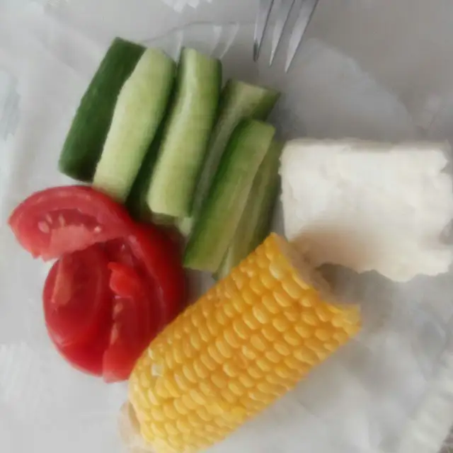 Öğlende annemlere gitmiştim ve kadıncağız ben yemek yiyip geliceğim diye kendilerine kadar birşeyler yapmıştı bende aç geçirmemek için öyle bir tabak hazırladım kendime ( mısırda bana zarar olmasın diye yarım yedim :KK66: )