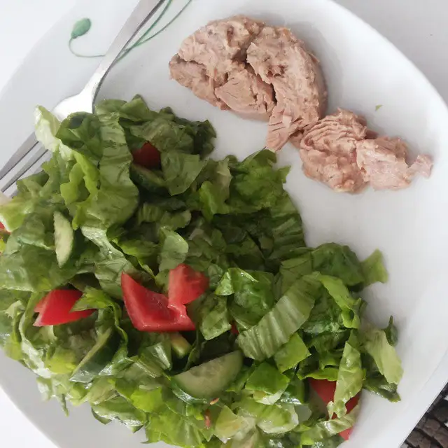 Öğlende ton balığı ve salata ( karıştırmayı sevmediğim için yan yana koydum :) )