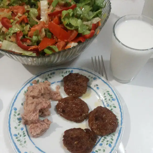 Sabah: 2 dilim ekmek. bir az peynir. 6 zeytin. 2 küçük domates. 1 salatalık. 1 b çay. 2 hurma.