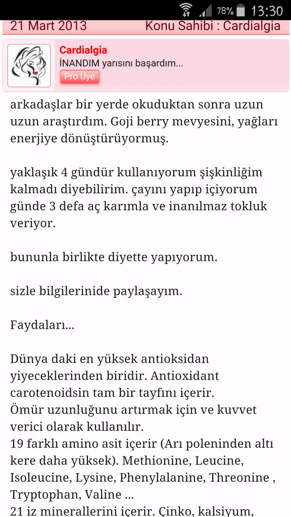 Gülhancım bize çok güzel bişey buldum goji Berry diye bi bitki çok ciddi faydalı burdada kullanan arkadaşlar olmuş