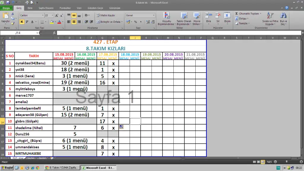 Bu arada Merve1707 ve amelia2 :KK3: Kızlarrrrrrr listede de görüldüğü gibi haftasonundan beri hiç paylaşımınız yok ( Adaylar listesindeyken özellikle daha dikkatli olmanızı istiyorum acıkcası sonuçta henüz listede değilsiniz ) ve üzgünüm ama eğer cumaya kadar 35+ mesaj sayınız olmaz ve menü bildirimlerinizde eksik olursa sizi takıma dahil etmem sıkıntı olacak ( kurallar gereği yoksa gönül ister herkes listede olsun ;) )