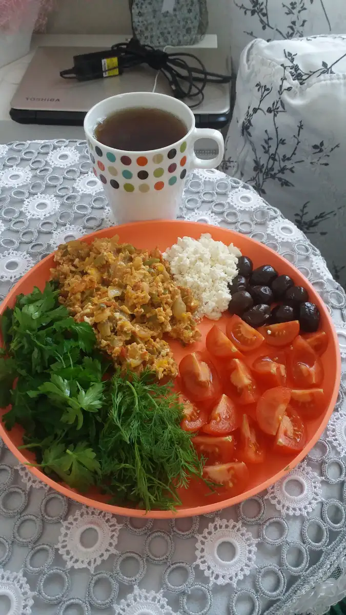 17:30 salata( marul, domates, salatalık, peynir), 1 tane fırında patlıcan, üstünün domatesiyle, 3 kornişon turşu, akşam fazla canım istemedi, halbusam ki kuzu kuşbaşı vardı, yağda kavrulmuş, belki de kokusu ağır geldiğinden, sevmem yiyemem koyun eti.