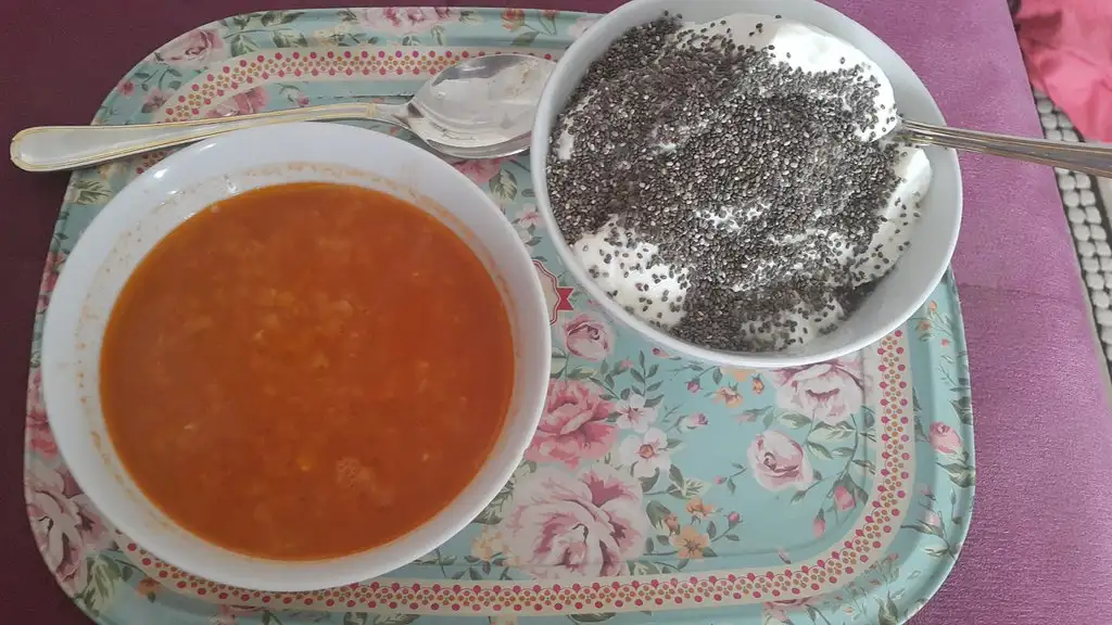 Ogle yemegim. Salata( 1 cay bardagi haslanmis mas fasulyesi, 5 cerry domates, 2 ceviz, dereotu, maydanoz, taze sogan, taze nane, az zeytin yag, az nar eksisi(sos degil) ) ve 1 kase tarhana corbasi