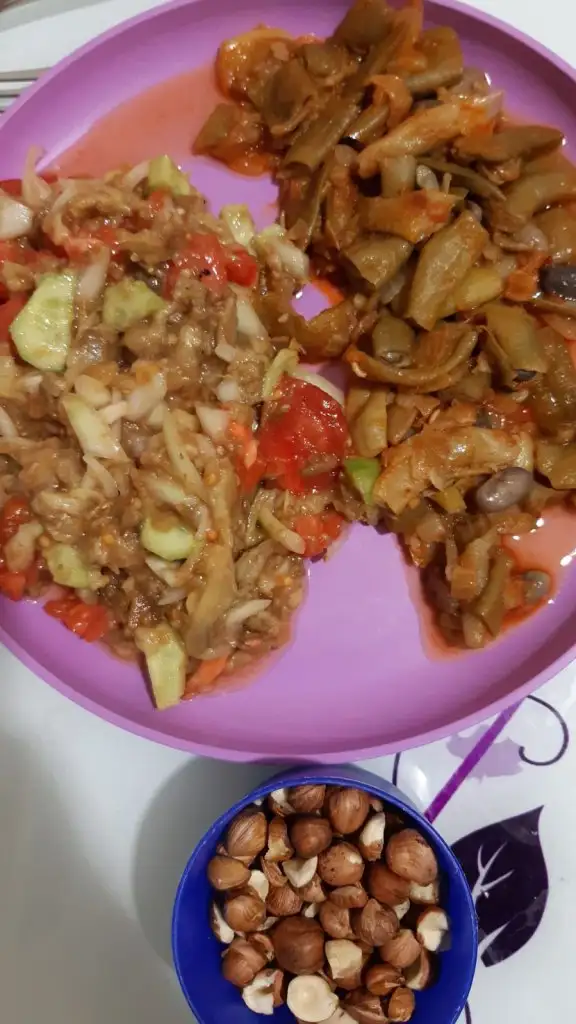 Aksam 2 kasık pilav bir parca haşlanmış et yarım kase corba