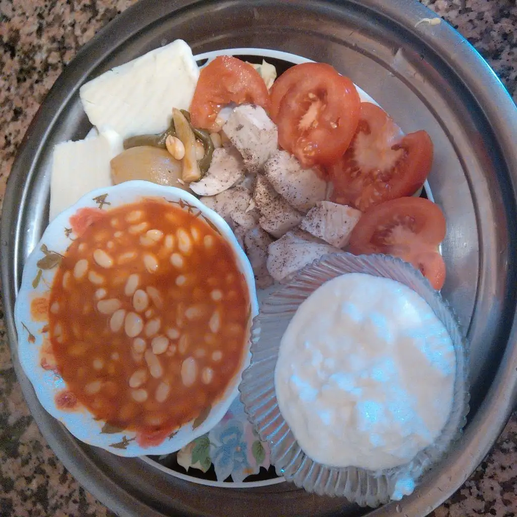 Sabah ; kapuskali yumurta +2 dilim k.ekmek+yesillik+yogurt