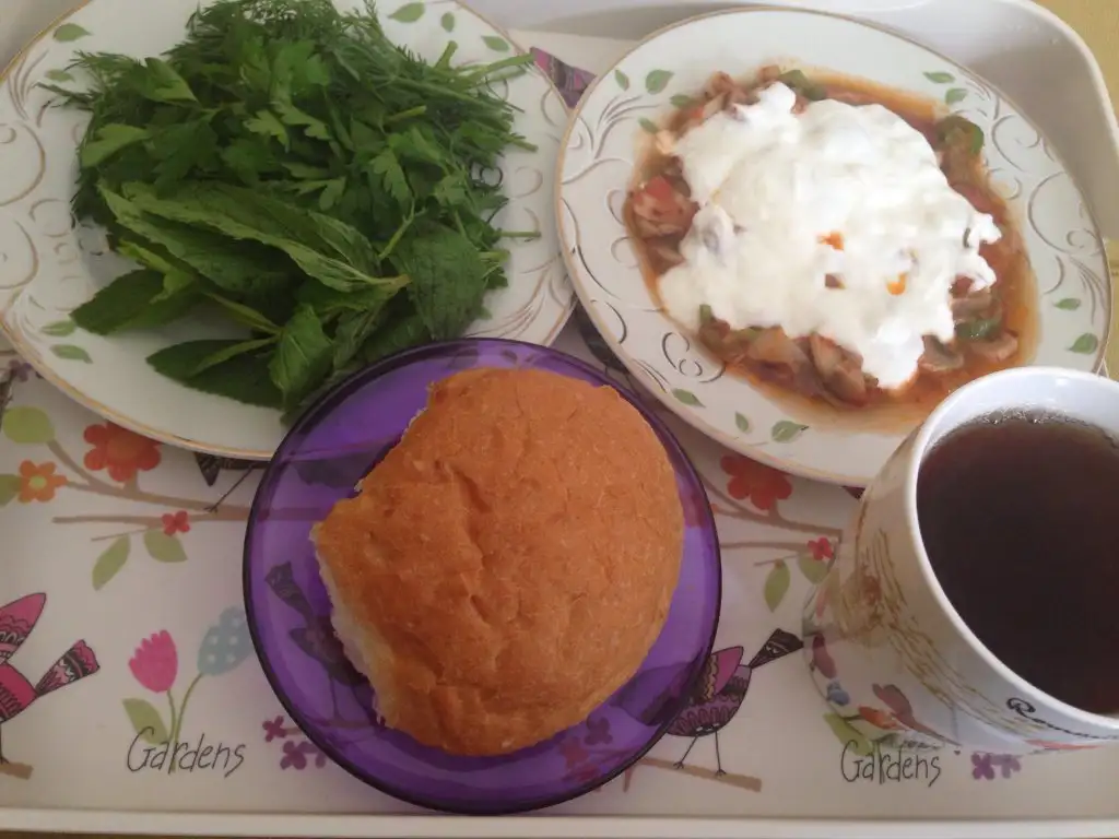 Öglen: mantar sote, maydonoz-dereotu-nane, ekmegin yarisini yedim , sekersiz cay