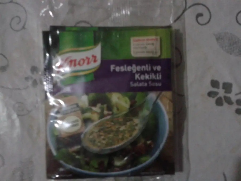 hemen anlatıyorum canım şimdi içindeki bu baharat karışımı tozu pakette zeytinyağı ve limon suyu ile karıştırın diyor. ben sadece limon suyu ve su ile karıştırdım. baharatlar keskin olduğu için zeytinyağının yokluğunu aratmıyor. ayrıca 1 paket 1 tencereye salataya yeter. tadı keskin çünkü. normal salata kasene kendine kadar hazırladığında yarım paketi de kullanabilirsin. otları yavan yavan yemiyorsun değişik bir şey olduBunu neyle yapiyoruz kuzum yagin icnemi koyuluyo