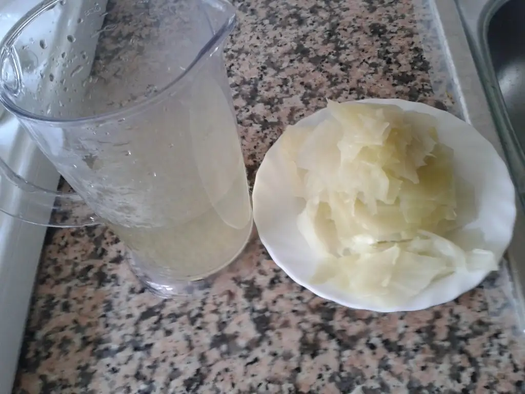 Canlar haşlanmış lahanam ve suyu. Suyu tam 500 ml.