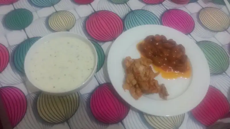 Bir parca tavuk 2 yemek kasıgı barbunya 1 kase yogurt corbası 1 dilim tam tahıllı ekmek