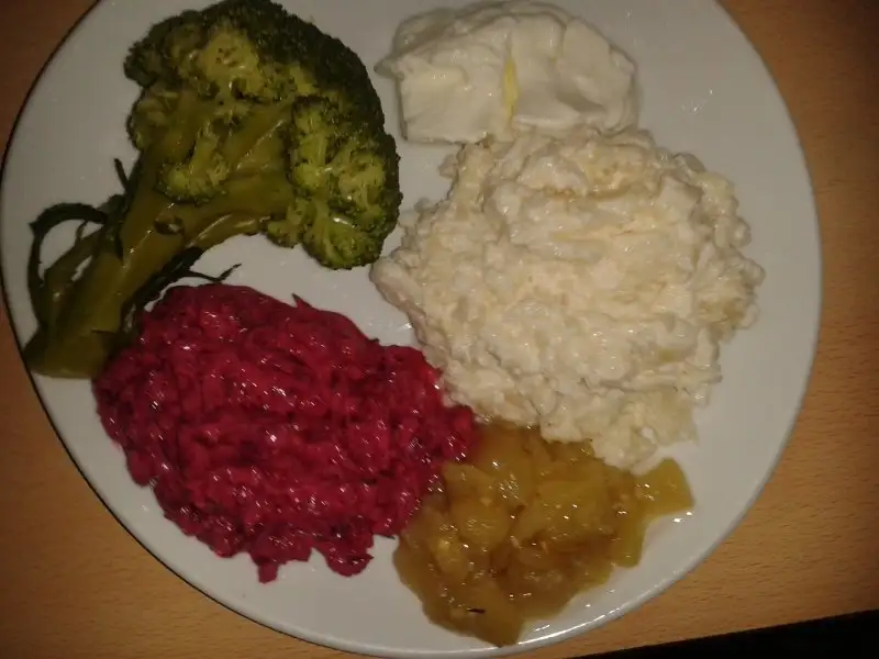 Eki Görüntüle 1752894 akşam yemeği haslamis brokoli kereviz kırmızı pancar sarımsaklı yogurt. Kozlenmis patlıcan