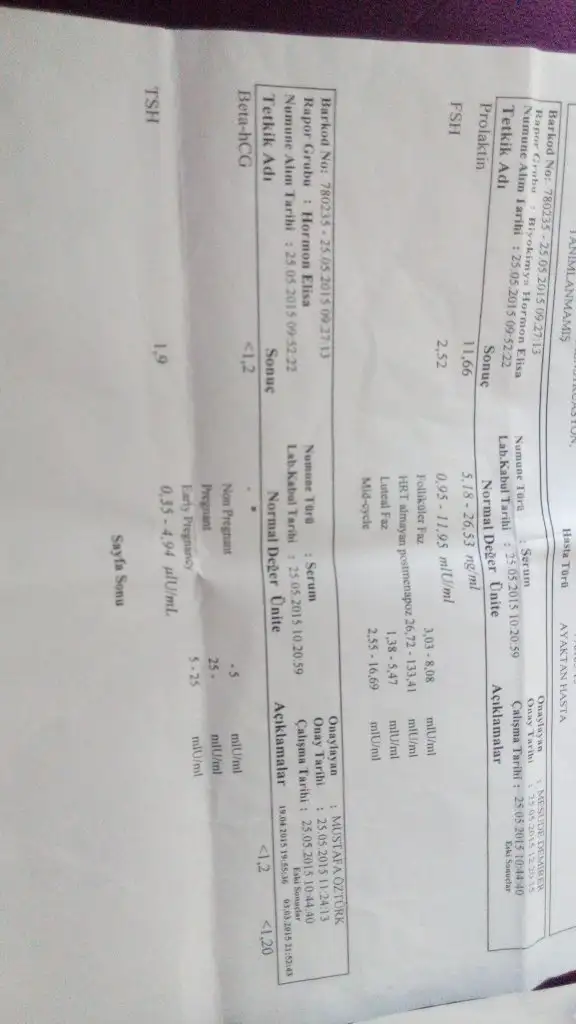 Benden hormon testi istedi doktor benimkiler iyiymis öyle dedihemen başka doktora gidin yeni test yaptırın, tedaviye başlayın çok zaman alıyo çünkü![]()