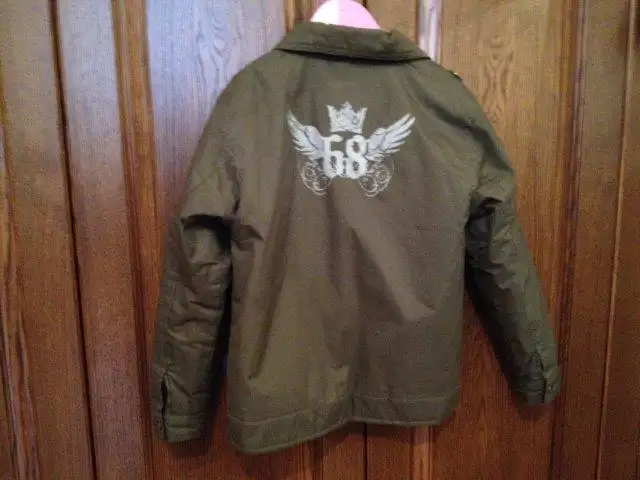 167- Yeşil miflonlu mont. Dubai'den alındı. Mısır malı. Beden 6-7 yaşa göre. Fermuarlı.