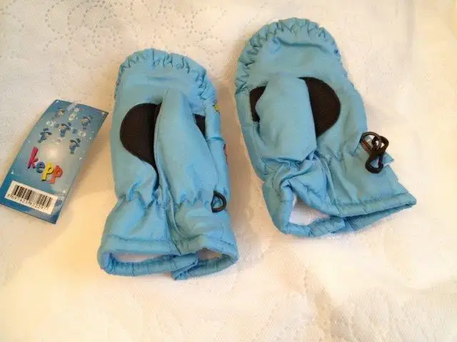 169- Mavi kar eldiveni (KULLANILMADI). Bilekten ayarlamalı. Size 1. En (4 parmağın eni) 8, boy 14 cm. 3 tl.