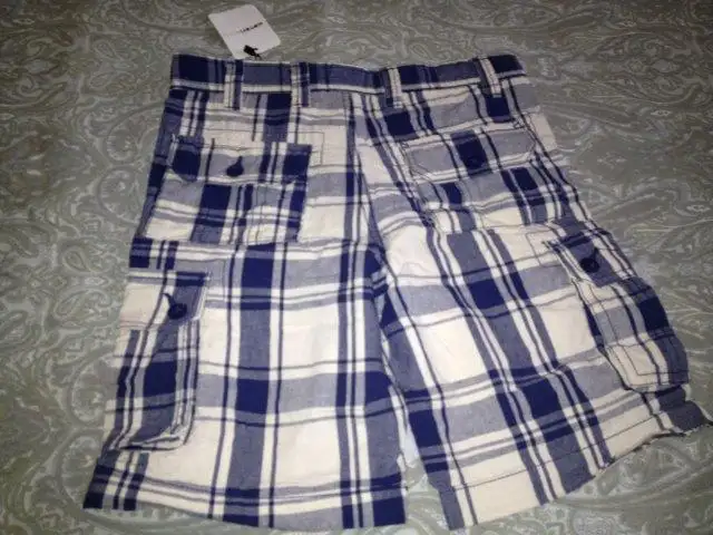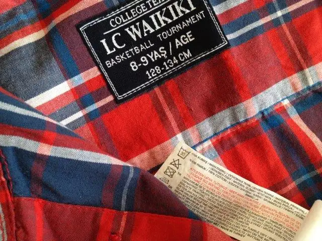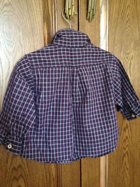 43- Benetton 1 yaş, 74 cm için lacivert kırmızı petit-carré gömlek. %100 pamuk.