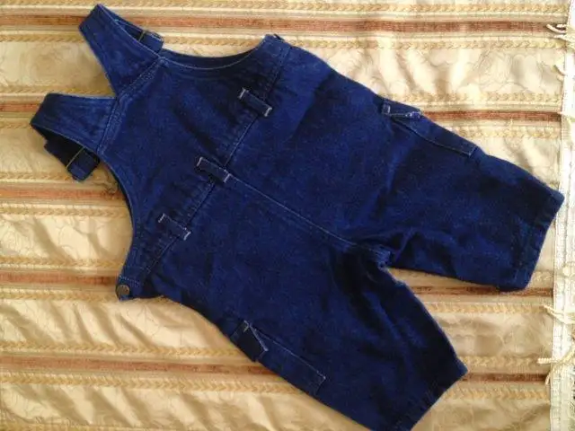 329- Yurtdışı Cyrillus marka kot tulum. Altı çıtçıtlı. Yanlarda 2'şer düğme var. Önde kapalı cepler. 6 ay/68 cm için ama daha büyüğe de olur. Bu ütüsüyle duruyordu ama kapalı kaldı diye yıkadım bir kere. Beli 30, boyu askılar takılıyken 60 cm. 20 tl.