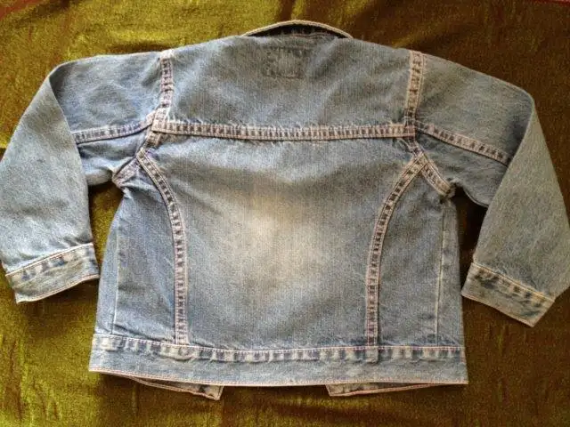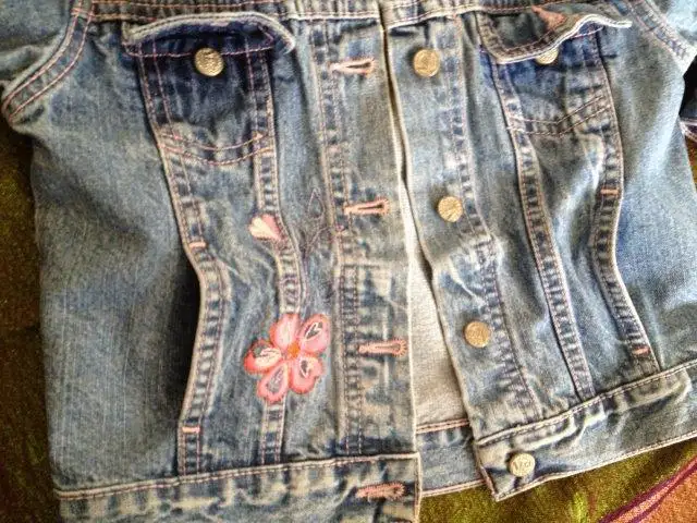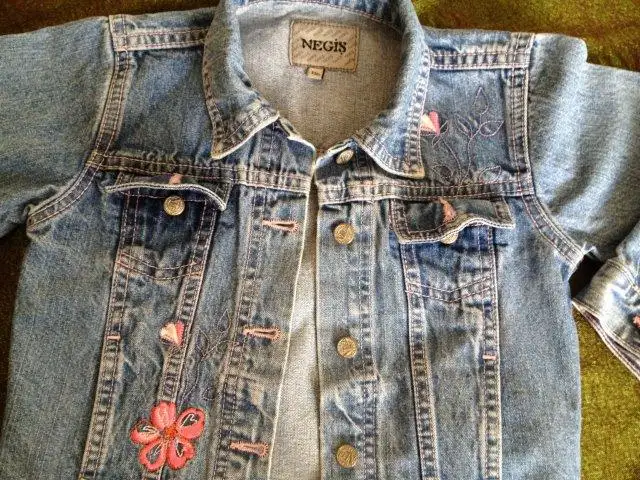 326b- Negiş kot ceket, yukarıdaki etekle nakışları takım ama bir beden büyük üst olduğu için. 110 cm, 5 yaş için. 15 tl.