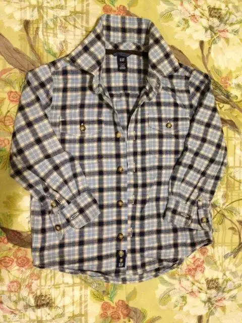 38- Baby GAP %100 pamuk 4 yaş mavi lacivert petit-carré gömlek.