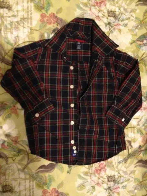 39- Baby GAP %100 pamuk 4 yaş lacivert kırmızı petit-carré gömlek.