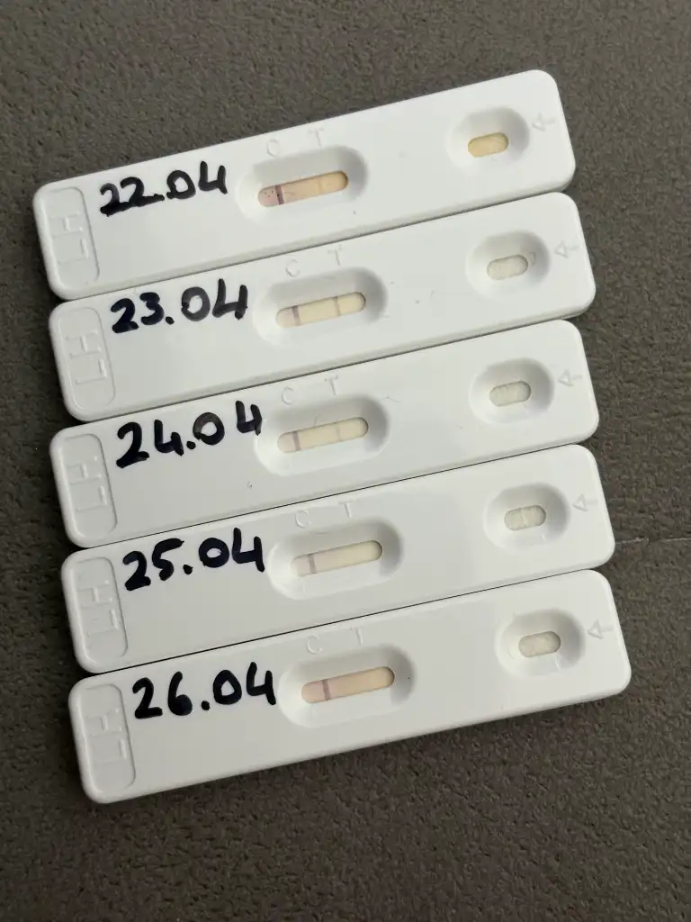 En koyusu ayın 23 u olan olduysa ozaman oldu yukurtlama cızgıler ıkısıde en koyu olunca yumurtlama var demek yoksa yokKızlar çok soru soruyorum ama aklıma takıldı ben geçtiğimiz aylarda 2 kere ovulasyon testi kullanmıştım çift çizgiyi gördüğümde değerlendirme yapmıştık ama gebe kalamamıştım sonra strese sokuyor diye birdaha test kullanmadım. Şimdi birşeye kafam takıldı gerek bu forumdaki fotoğraf atan arkadaşlardan gördüğüm gerekse trendyoldan satın aldığım yerde fotoğraflı yorumlardan gördüklerimde çift çizgiyi görenlerin çizgileri baya baya koyu kırmızı benim hiç öyle olmadı hatta saklıyordum çıkardım baktım fotoğrafınıda atayım size nisan ayındaki testlerim. Acaba ben yumurtlamıyor muyum ya şimdide o takıldı kafama.