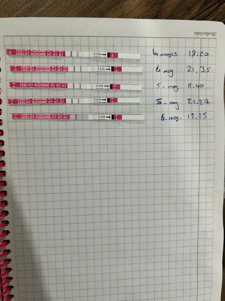 Merhaba kızlar bende geldim 10 Mayıs yumurtlama görünüyor bakalım reglim dün bitti ovulasyon yaptım da böyle çıktı genelde reglim bittikten 6 gün sonra çizgileri belirgin çıkıyor garip geldi bu ay aşırı kasık ağrım var