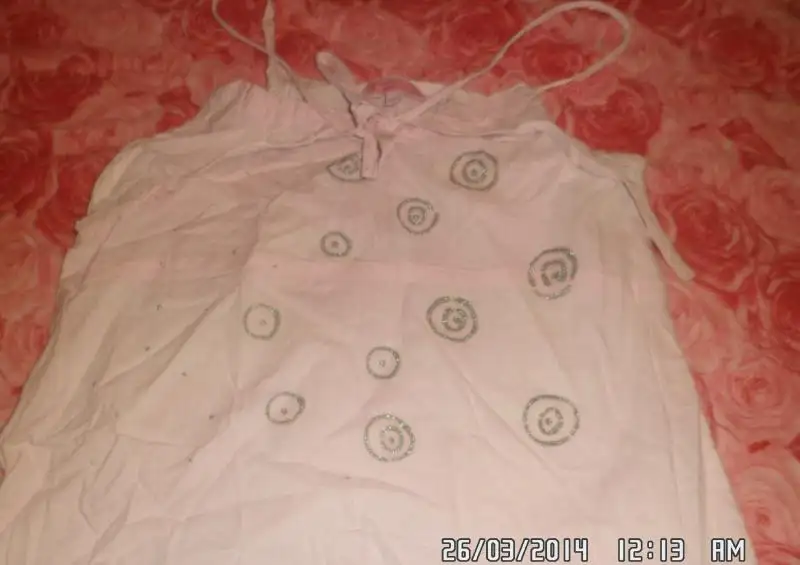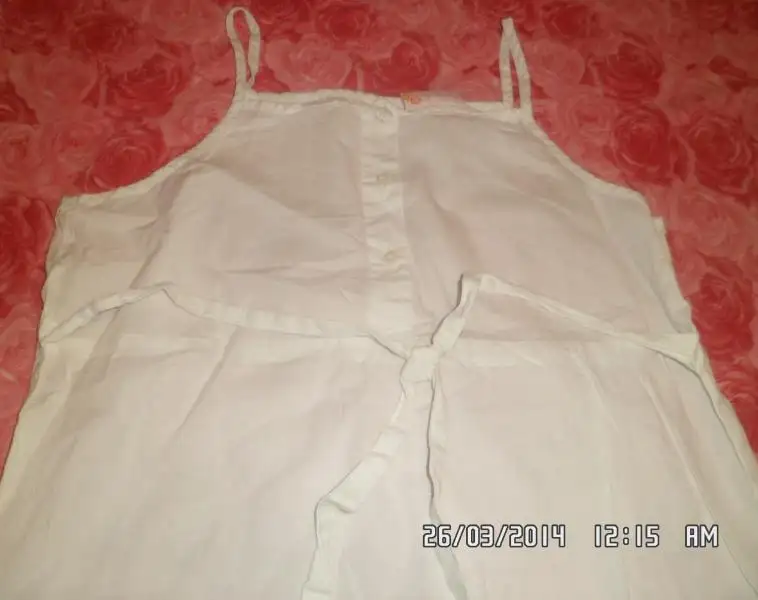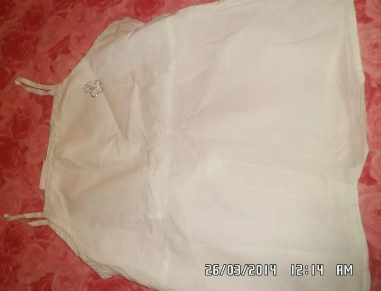 LCW marka kelebek taşlı süsü var göğsünde, arkası düpmeli kurdeleli askılı beyaz şık bluz 8 TL