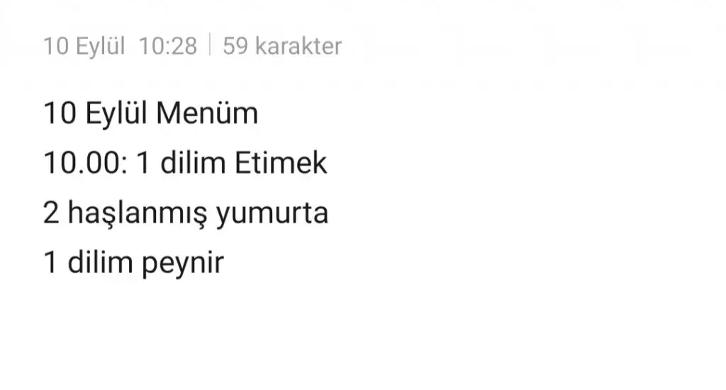 12:00 2 dilim cavdar, 1.5dilim suzme peynir, 1ck salca, domates, 10 zeytin, 1 yumurta
