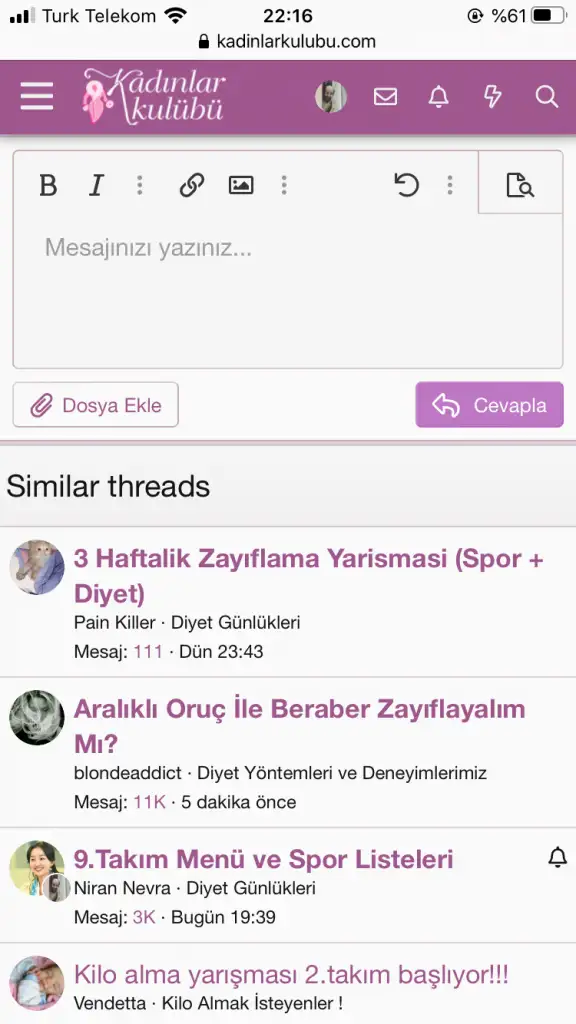 • Merhaba, Kadınlar Kulübü'ne ÜCRETSİZ üye olarak yorumlar ile katkıda bulunabilir veya aklınıza takılan soruları sorabilirsiniz.