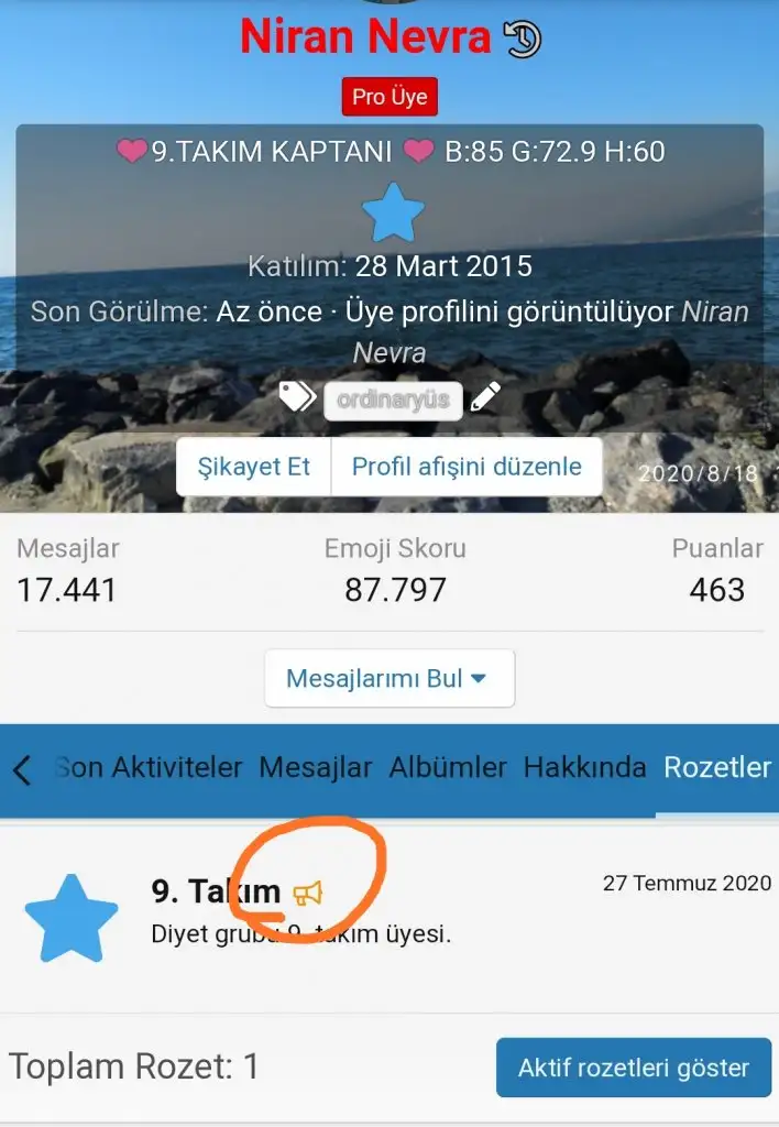 Nickinizin altında 9.Takım rozerit olan yıldız ikonu çıkacak