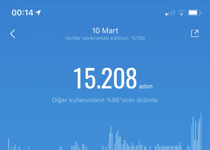 Dün adımlarımı sayamadım şarjı bitti bilekliği saatlerce şarjda bekledi fakat şarj olmadı .sayı bilmiyorum o yüzden