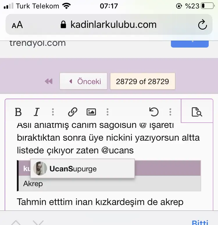 Aslı anlatmış canım sağolsun @ işareti bıraktıktan sonra üye nickini yazıyorsun altta listede çıkıyor zatenSpor ve adimlarimizi yazip etiketlemzsek spor listesine giremuyum yoksa kac gundur bosami gitti