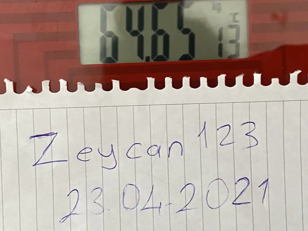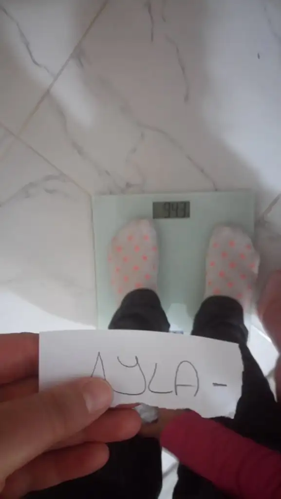 Tamam canımSuna’cım bildirimin böyle olacak kuzum tartı fotoğrafı üzerinde nick ve tarih yazılı not ileAyla-