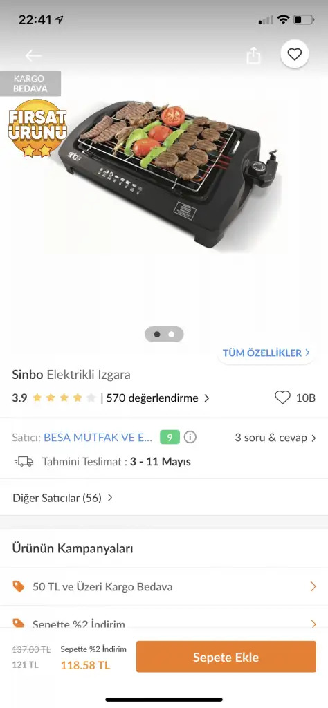 Bizimki şu canım. Eşim Migros’tan 125 TL almış. İnternette 7 TL daha ucuz. Köfte, tavuk, pirzola için ideal. Bonfile, biftek gibi etler için biraz yetersiz bence. Bunlar için döküm ızgara tava daha iyi oluyor.Hadiya ayy ben de aldirayim o zaman,netten biraz baktım da 100 liradan iki bin üç bin liraya kadar varben de sizlerinki gibi normal bir tane alayım o zaman,sonuçta güzel iş goruyor.
